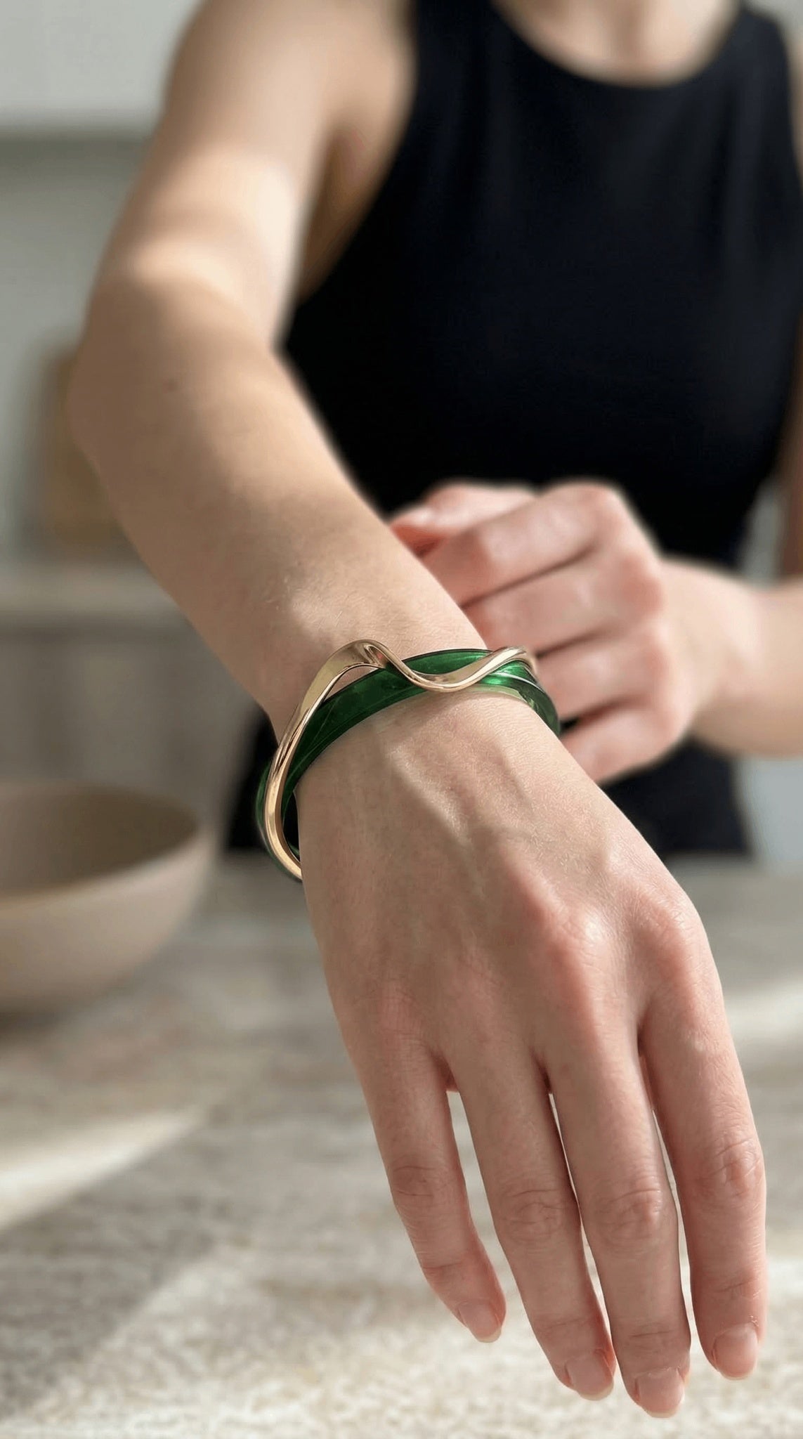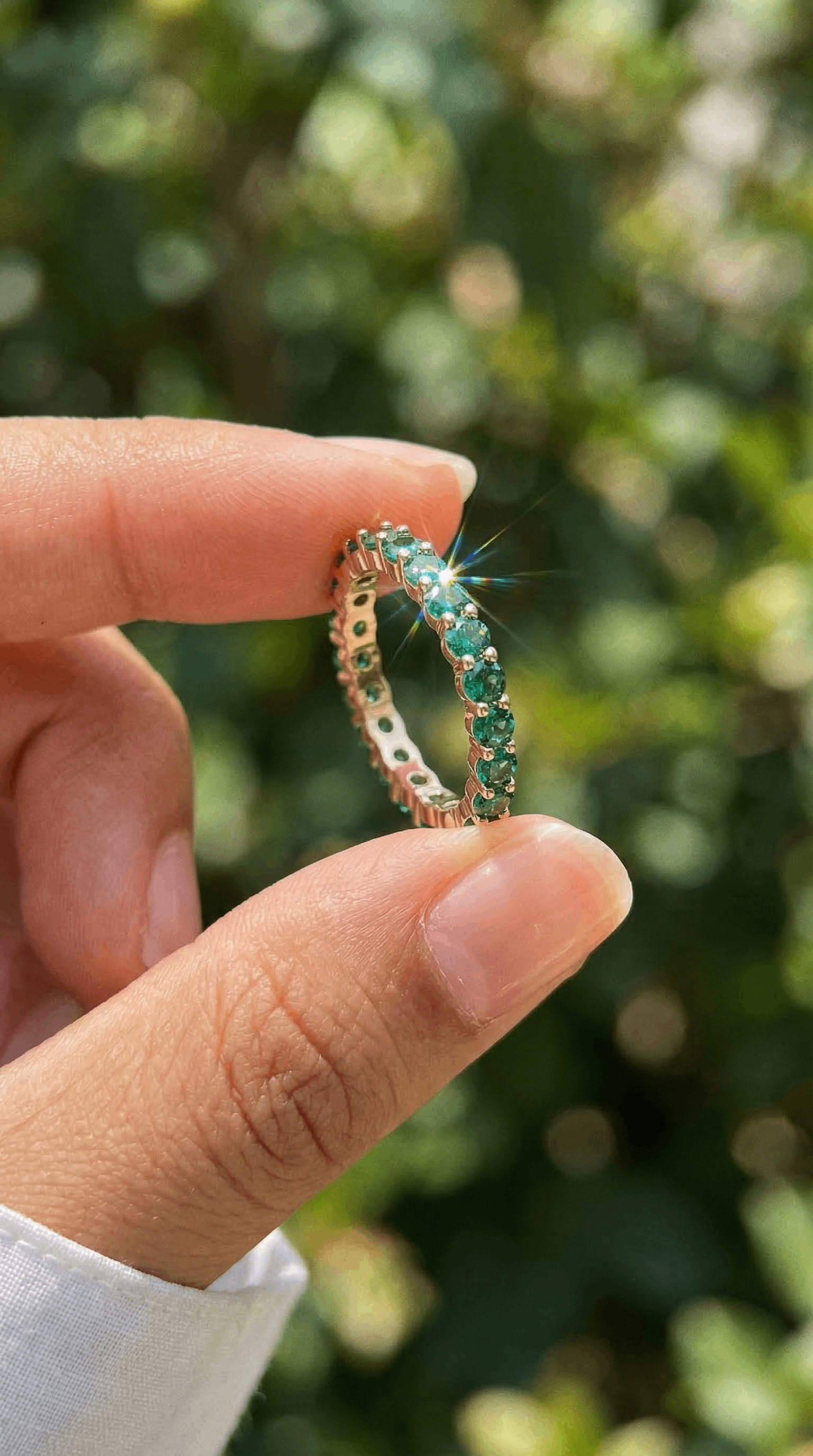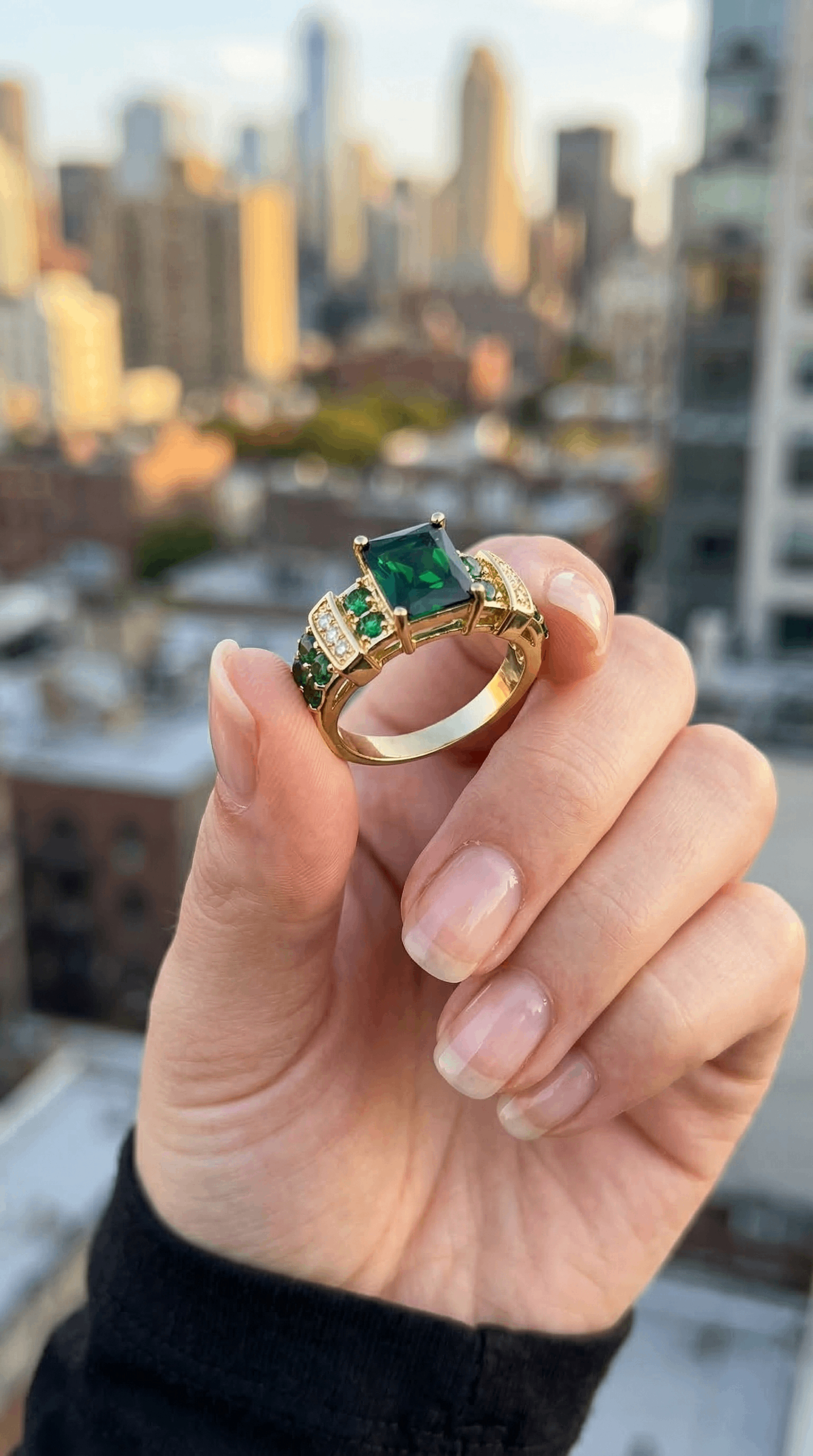 Design: Inspired by the richness and symbolism of emerald tones, this piece blends classic beauty with a modern silhouette that elevates any look effortlessly.